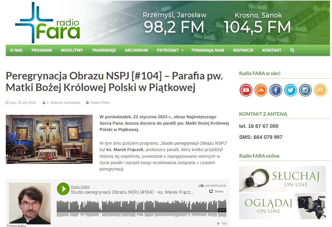 Radio FARA · Studio peregrynacji Obrazu NSPJ [#104] - ks. Marek Frączek (22.01.2024)
